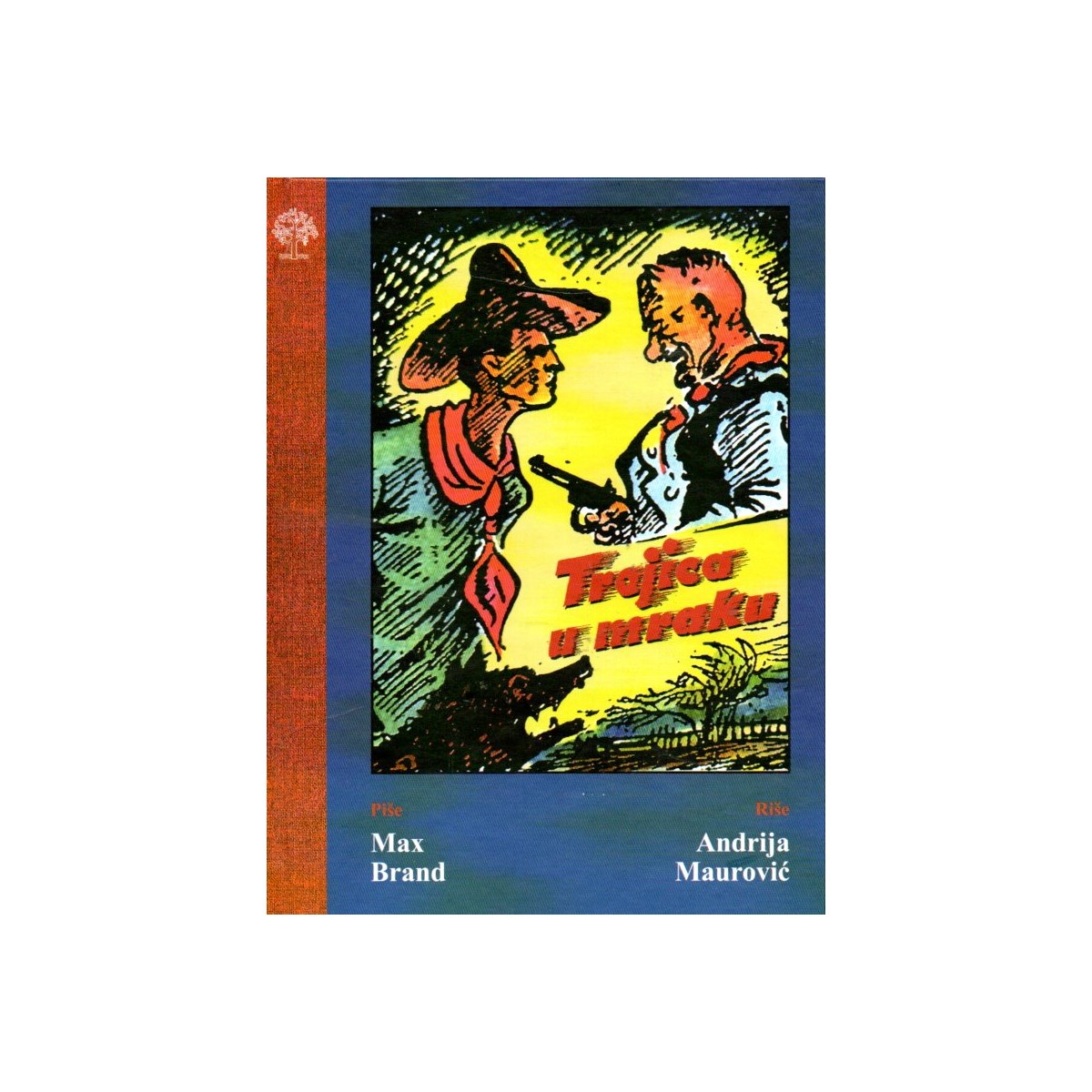 Ako bismo se trebali odlučiti za jedan jedini naslov koji se može titulirati kao najkarakterističniji, »najprepoznatljiviji« (trademark) za strip u Hrvatskoj u njegovoj stoljetnoj povijesti, ali i za cijelo područje nekadašnje Jugoslavije izbor bi pao na Trojicu u mraku! Strip je nastao prema literarnom predlošku Maxa Branda (1892. – 1944.), američkog pisca pravog imena Frederick Faust, u scenarističkoj obradi Krešimira Kovačića i crtežima i strip-režiji Andrije Maurovića. Max Brand nije nešto objavljivan u Hrvatskoj, u katalogu NSK zavedena su četiri njegova naslova, pa je ovo prilika za bolje upoznavanje s autorom. Prva koja je ukazala na značenje stripa i knjige Trojica u mraku bila je sveučilišna profesorica dr Vera Horvat Pintarić u studiji Andrija Maurović: strip i akciona tehnika pogleda iz 1973.: »Maks Brand ne stvara takve ličnosti koje su samo aktivno prisutne, nego nagovješta i psihologiju junaka, koja će kasnije postati i glavni pokretač dramske radnje...« Trojica u mraku je mistično-ezoterična priča o čovjeku koji nije čovjek, o konju koji je đavo i o psu koji je zapravo vuk. Taj čovjek je mladić Dan koji je odrastao u šumi, o kome kolaju legende da ga je dojila vučica i ostao je mladić »dječačkog izgleda i zvonkog djevojačkog glasa, iz čijih očiju sijeva neobičan žuti sjaj«. Njegovi stalni pratioci su divlji konj Satan i pripitomljeni vuk Bart, nad kojima Dan ima nadnaravnu moć i s kojima komunicira kao da su ljudska bića... Od prvog pojavljivanja 1936. bilo je nekoliko izdanja stripa Trojica u mraku, a 2001. objavio ga je i Šareni dućan (povodom 100-godišnjice Maurovićeva rođenja i 20-godišnjice smrti). Zanimljivo je spomenuti i da je rock-grupa Aerodrom svoj peti studijski album (1986.) nazvala Trojica u mraku, a na omotu ploče je kadar iz Maurovićeva stripa! (Iz pogovora Veljka Krulčića)