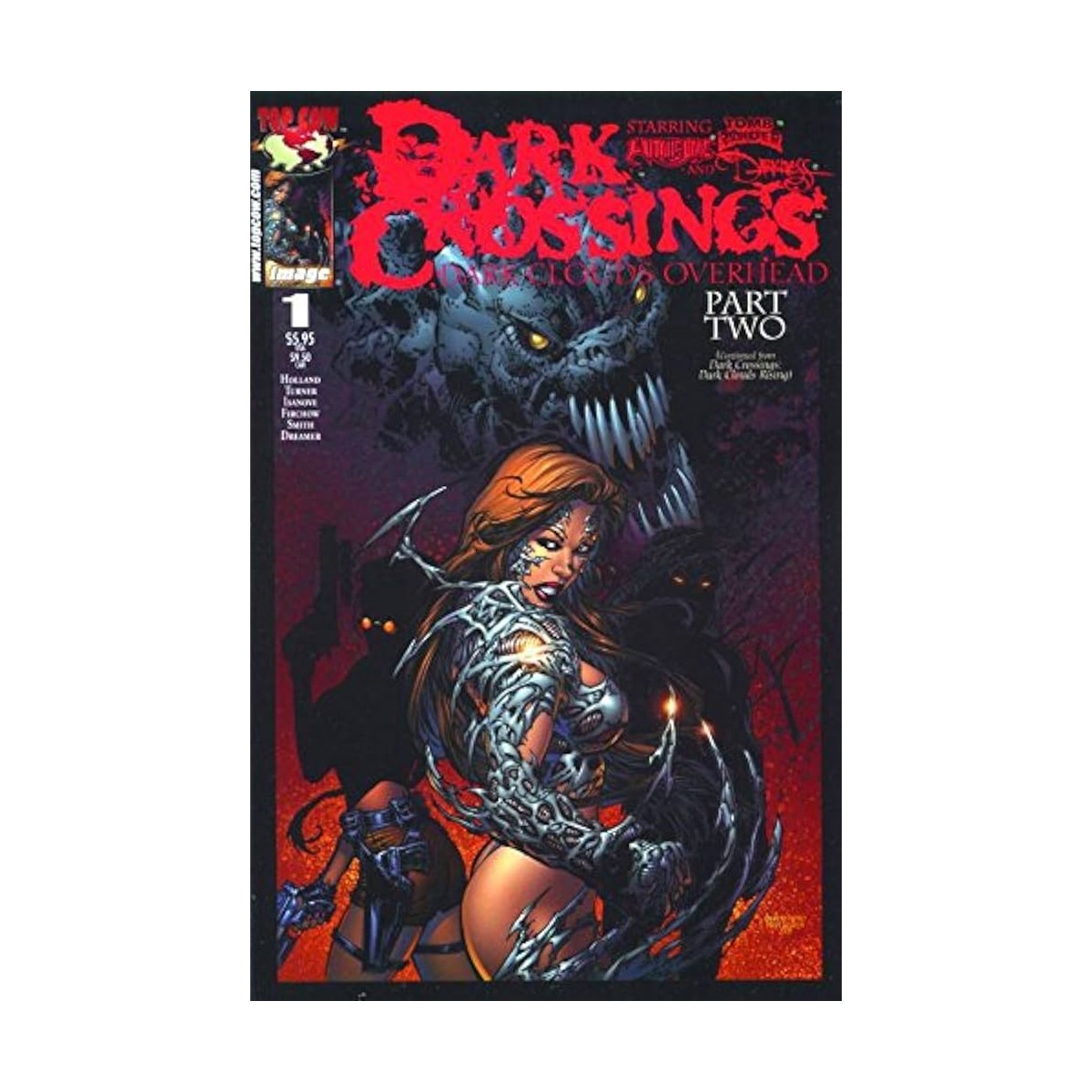 Detective Sara Pezzini's investigation of a murder reveals that the prime suspect is Lara Croft! After all, it was Lara who had just recently delivered an ancient sword to the victim, a renowned martial arts master. Sara finds Lara and begins to suspect the killer is still out there, along with the now missing sword.Meanwhile, the lovely and lethal Daria needs to borrow a little something from Jackie Estacado to aid in her hunt. Daria seeks the scariest monster of them all-- The Butcher Knight. This issue promises everything you want in a mega crossover-- Blood. Guts. Babes.