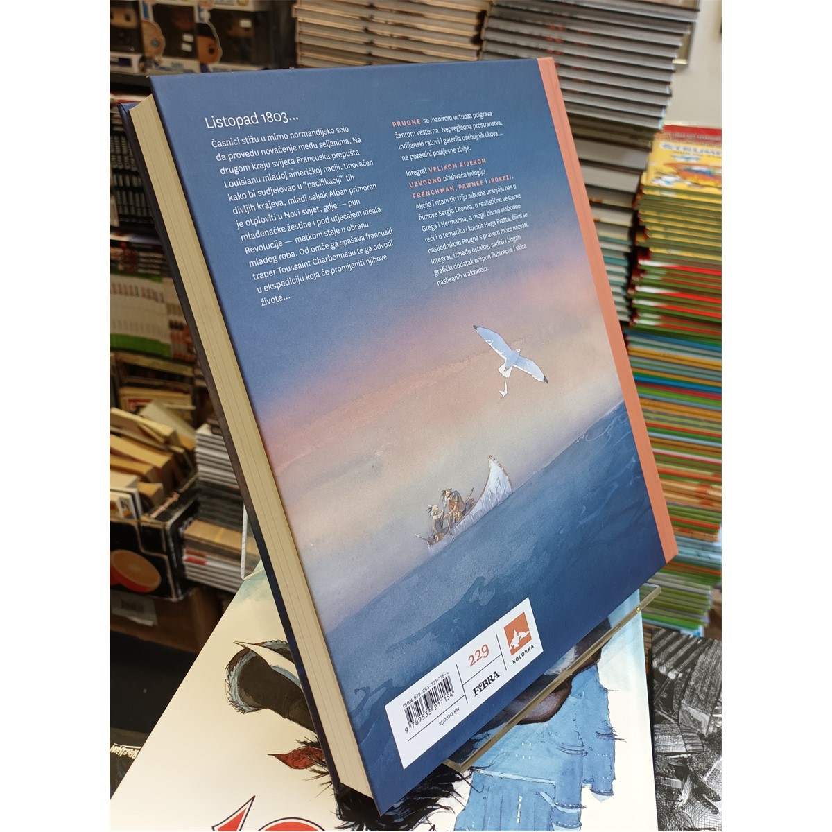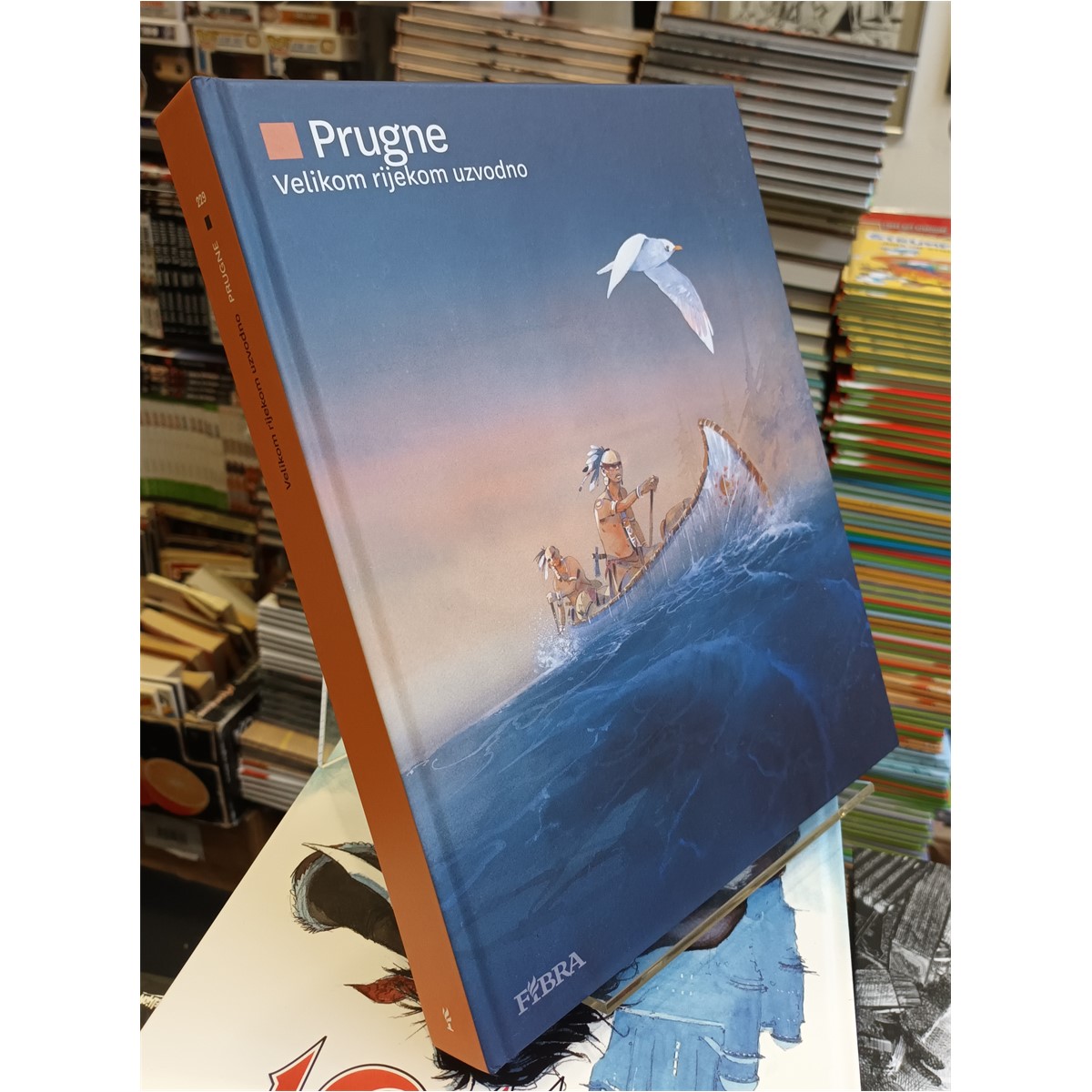 Listopad 1803... Časnici stižu u mirno normandijsko selo da provedu novačenje među seljanima. Na drugom kraju svijeta Francuska prepušta Louisianu mladoj američkoj naciji. Unovačen kako bi sudjelovao u "pacifikaciji" tih divljih krajeva, mladi seljak Alban primoran je otploviti u Novi svijet, gdje – pun mladenačke žestine i pod utjecajem ideala Revolucije – metkom staje u obranu mladog roba. Od omče ga spašava francuski traper Toussaint Charbonneau te ga odvodi u ekspediciju koja će promijeniti njihove živote... Prugne se manirom virtuoza poigrava žanrom vesterna. Nepregledna prostranstva, indijanski ratovi i galerija osebujnih likova... na pozadini povijesne zbilje. Integral "Velikom rijekom uzvodno" obuhvaća trilogiju Frenchman, Pawnee i Irokezi. Akcija i ritam tih triju albuma uranjaju nas u filmove Sergia Leonea, u realistične vesterne Grega i Hermanna, a mogli bismo slobodno reći i u tematiku i kolorit Huga Pratta, čijim se nasljednikom Prugne s pravom može nazvati. Integral, između ostalog, sadrži i bogati grafički dodatak prepun ilustracija i skica naslikanih u akvarelu.