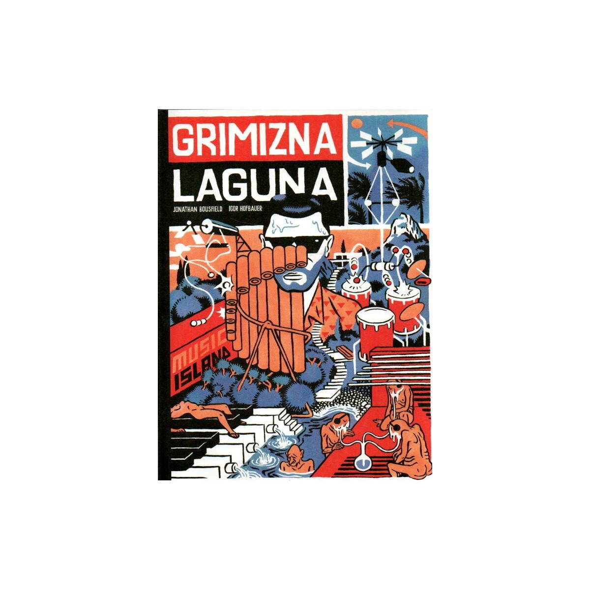Grimizna laguna je autorski strip nastao u suradnji Igora Hofbauera, jednog od najpoznatijih hrvatskih vizualnih umjetnika, koji je nacrtao ilustracije, i Jonathana Bousfielda, Britanca s hrvatskom adresom, novinara, pisca turističkih vodiča i autora vodiča “Rough Guide to Croatia”, koji je napisao scenarij. Ovo zanimljivo djelo o “paklenoj strani turističkog raja” sastoji se od serije priča koje se odvijaju u fikcionalnom resortu za odmor po imenu Crimson Lagoon. Na prvi pogled nevin okvir za priču pretvara se ubrzo u splet opskurnih, nadrealnih situacija, koje scenarist Bousfield tumači kao “alegoriju o izmišljenim menadžerskim i političkim elitama”. Suradnja s Jonathanom Bousfieldom, koji je proveo mnogo godina prateći razvoj turizma u tranzicijskim društvima, dala je priliku Igoru Hofbaueru da dodatno obogati svoju unikatnu umjetničku viziju novom specifičnom, britkom temom.