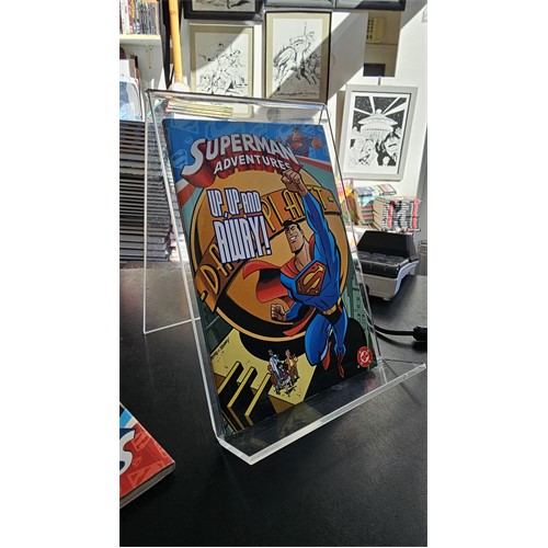 The adventures of the Man of Steel are in two digest-sized books! Volume 1 — reprinting SUPERMAN ADVENTURES #16, 19, and 22-24 — features Brainiac, the Parasite, Lex Luthor, Mr. Mxyzptlk, Bizarro, Lobo, and Darkseid!