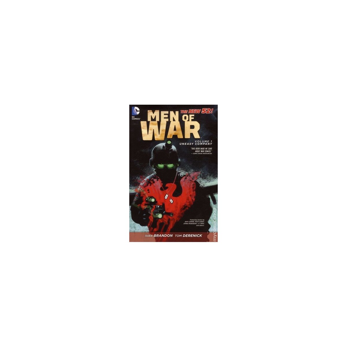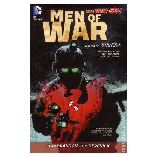 As a part of the acclaimed DC Comics—The New 52 event of September 2011, Men of War follows young, headstrong soldier Joe Rock (grandson of the legendary Sgt. Rock) as he assumes command of Easy Company–a team of ex-military men turned contractors. Will they survive the battle-scarred landscape carved by the DCU's Super-Villains? Find out in this explosive new series from Ivan Brandon (Viking, Doc Savage) and Tom Derenick (Justice Society Of America)!