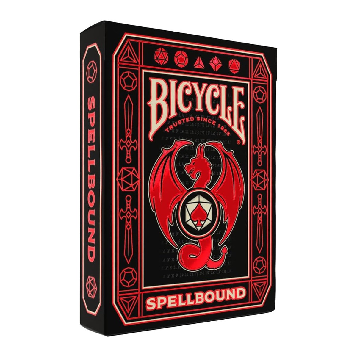 Dizajn poleđine karata inspiriran fantazijom stavlja mačeve, bodeže, zmajeve i poliedarske kocke u središte pozornosti.